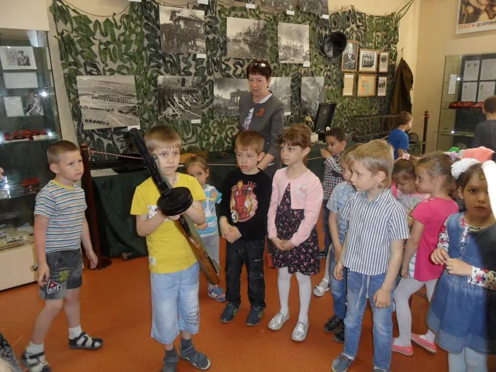 Во время лекции малыши с огромным интересом слушали научного сотрудника музея Наталью Ершову, узнавая все больше и больше историй освобождения своей малой Родины от немецко-фашистских захватчиков, о том какой ценой досталась Великая Победа, а также как важно сохранить воинскую доблесть своих земляков, дедов и прадедов. По окончании лекции ребята задавали вопросы, а это значит что время, проведенное ими в музее, не потрачено даром и научным сотрудникам удалось донести до столь юных слушателей историю нашей Родины и сформировать у них чувства гордости за героические традиции. Перед уходом дошколята с радостью сфотографировались возле музейных экспонатов.