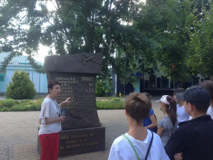 Турмаршрут пролегает по достопримечательностям центральной части города Гулькевичи, богатого своей уникальной историей. Периодически останавливаясь в местах размещения памятных знаков, ребята услышали от научного сотрудника Татьяны Черновой интересные исторические подробности о героическом прошлом города, о мужестве и героизме земляков во время Великой Отечественной Войны, о людях, которые прославили наш район и город в мирное время. Закончилась пешеходная экскурсия у памятника «Побег из ада», где группе школьников предложили посетить выставки музея, а также другие туристические маршруты.