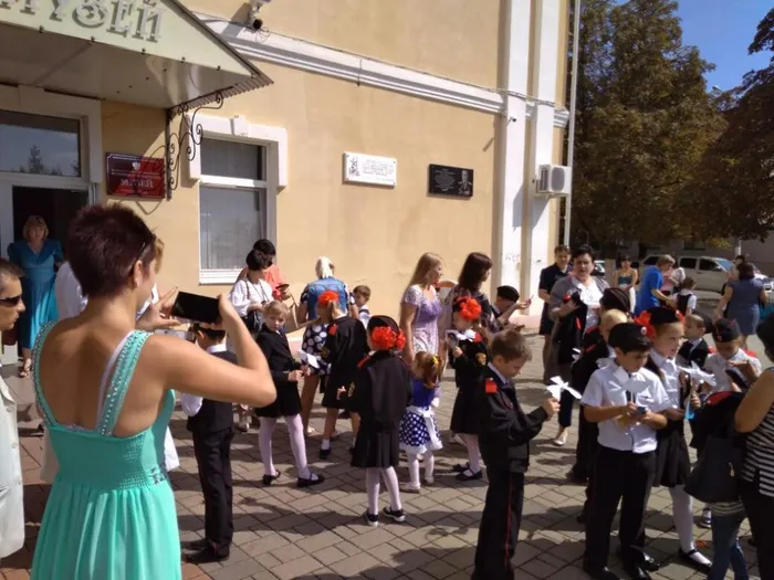 Сразу после окончания торжественной линейки ученики 3 класса школы № 3 в сопровождении классного руководителя и родителей отправились по интересному пешеходному туристическому маршруту «По старым улочкам пройдусь». Научный сотрудник Татьяна Чернова рассказала ребятам историю названия улиц, о памятных исторических знаках, установленных в центральной части города. В первый день учебного года юные граждане еще раз вспомнили даты военной истории Гулькевичского района и почтили память павших героев.