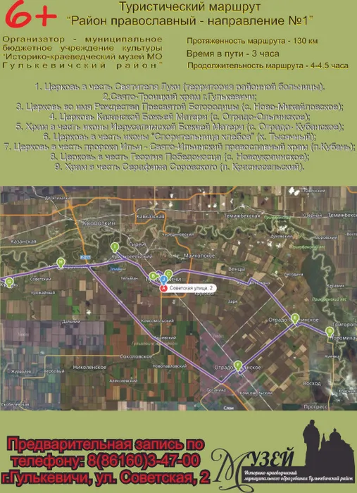 Долгожданный туристический маршрут разработан и принят в музее для группового посещения жителями и гостями города! Четвёртый турмаршрут мы назвали "Район православный-направление №1". Почему направление №1, спросите вы? Все просто, в этом направлении мы предлагаем посетить храмы и церкви построенные, т.е. те, которые можно увидеть и зайти внутрь. Естественно мы предполагаем и второе направление, как только будут построены все храмы и церкви!