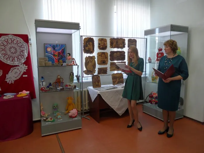 Талантливые люди талантливы во всем. Совершенно неожиданно раскрылась библиотекарь межпоселенческой централизованной библиотеки Анна Тараненко. Её ажурные салфетки выполненные в технике «Ришелье» очень понравились посетителям. Интересны и вязанные крючком игрушки Антонины Ревы. Поистине ювелирная работа. Празднично выглядит посуда, украшенная в технике декупаж - мастерицы Светланы Леонтьевны Серегиной.
